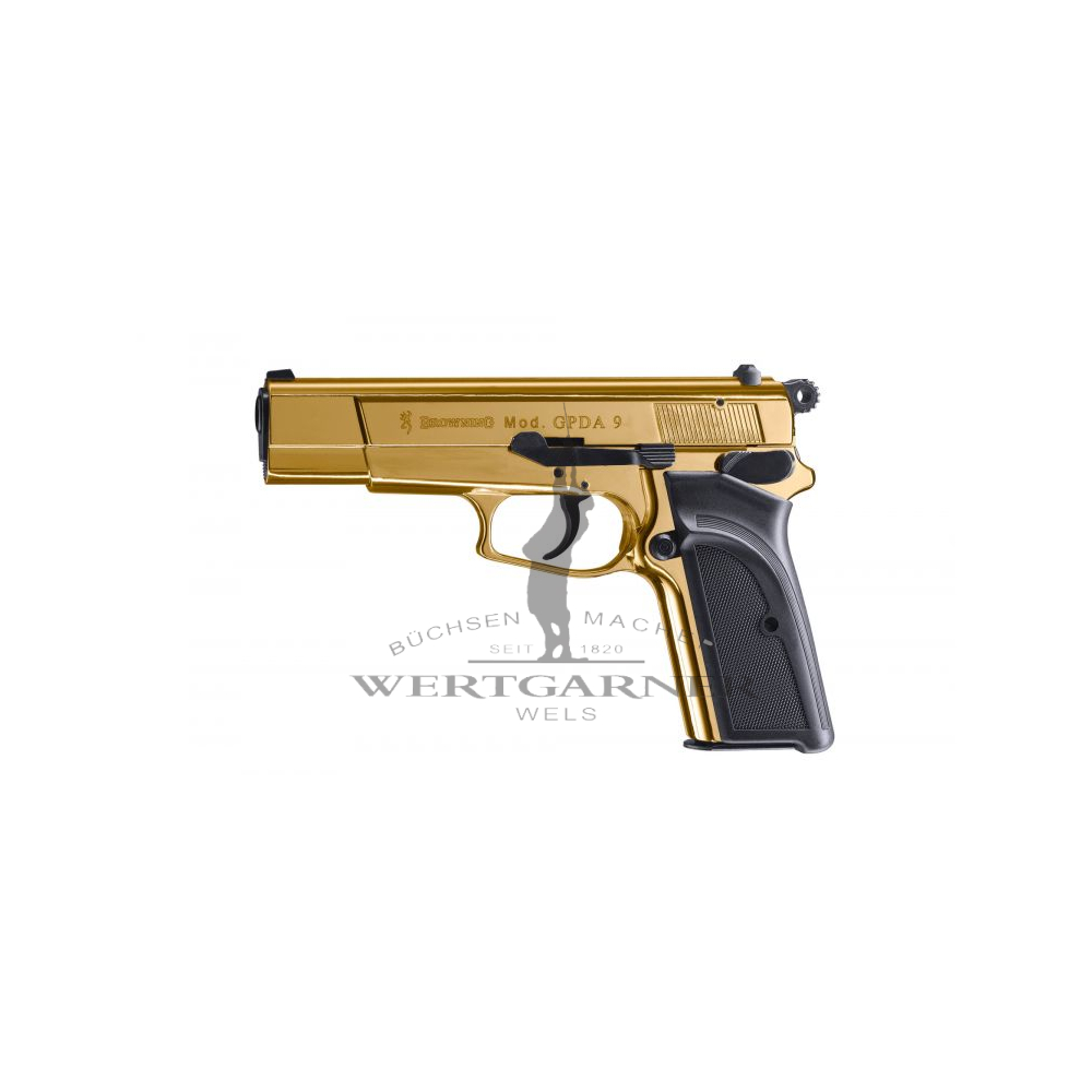 Browning GPDA 9 - Die Gas-Signal-Waffe für Profis im starken Kaliber 9 P.A.K., 24 Karat vergoldet, mit Kunststoffgriffschalen