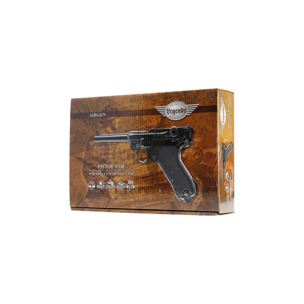 Dieser Pistolenklassiker begeistert schon mehr als ein Jahrhundert lang die Technik-Fans weltweit - die brünierte Version mit Vollmetallgehäuse besitzt sogar ein realitätsnahes Blowbacksystem! Eine Ganzmetall-Konstruktion von fast 900 Gramm mit originalgetreuer Flügelsicherung und herausnehmbarem Metall-Magazin für 20 BBs.