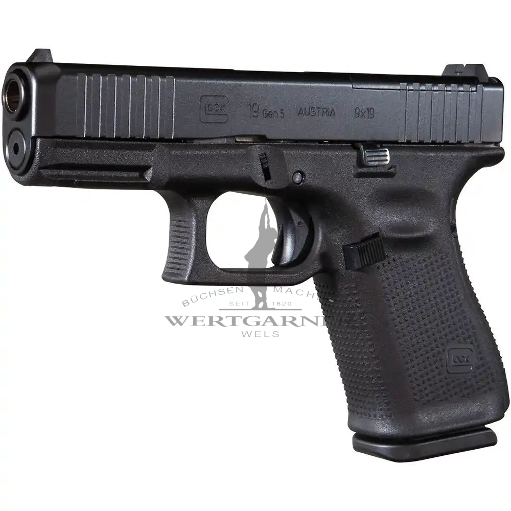 Die Glock 19 Gen5 MOS FS kommt inklusive Kunststoffkoffer und Reservemagazin.